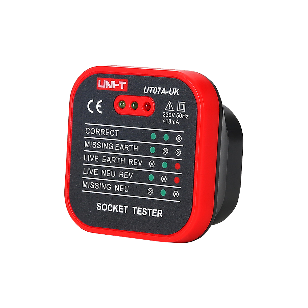 UT07 series socket testers can check socket-wiring errors. These tools are widely used in commercial and residential areas. UT07B testers also include the leakage test feature to check whether circuit breakers are working properly.