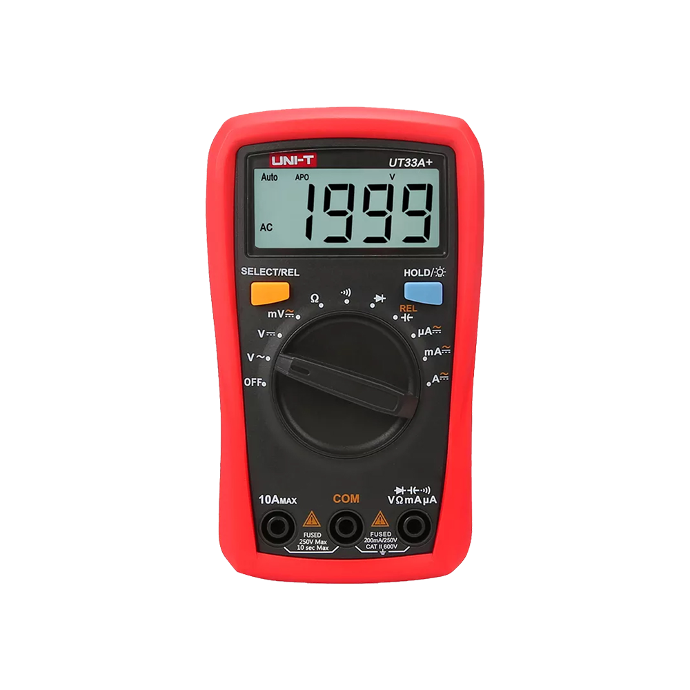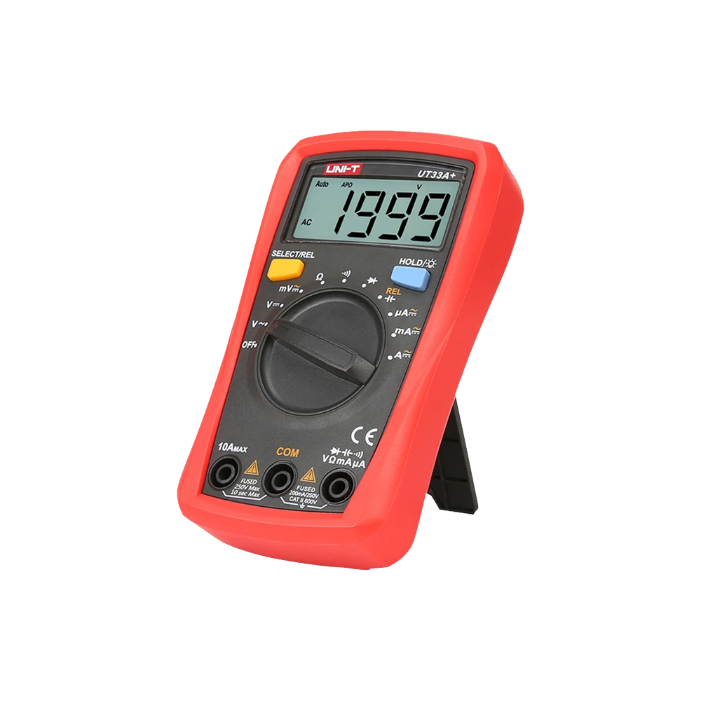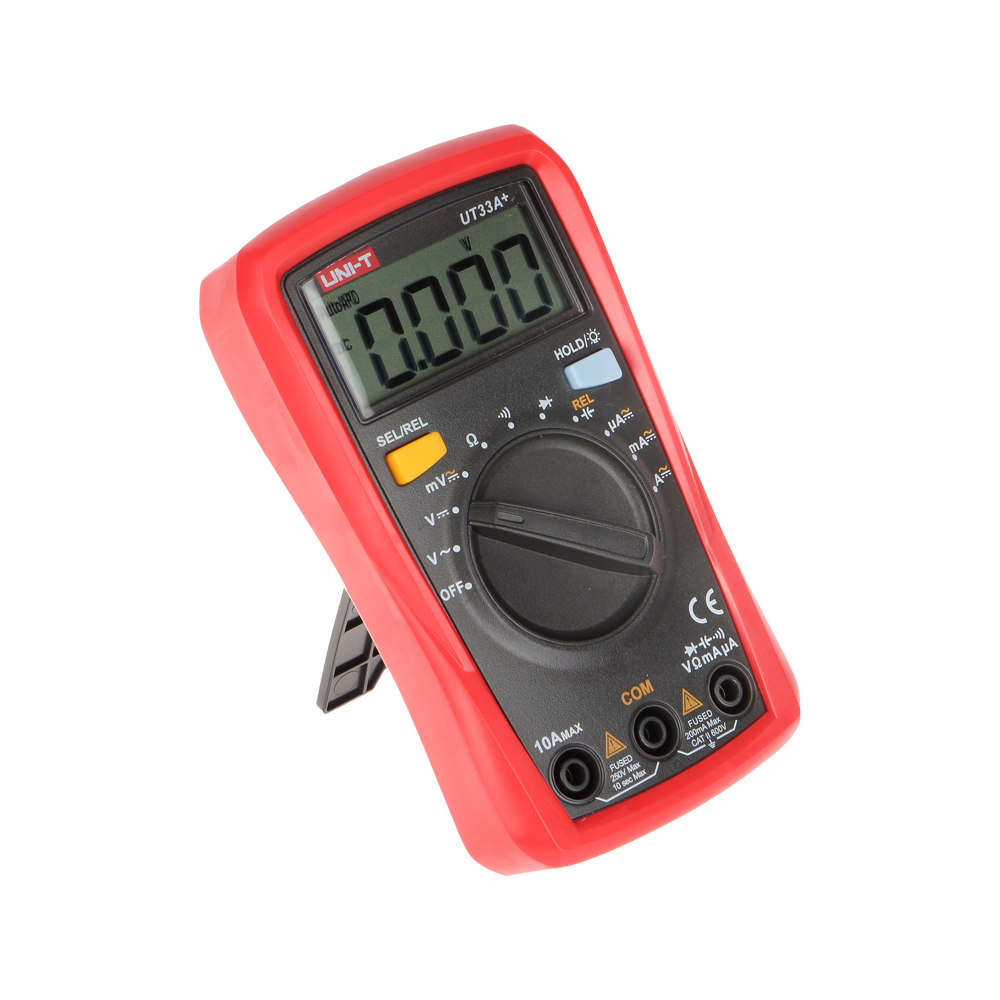 The new generation UT33+ series redefines the performance standards for entry-level digital multimeters. Our innovative industrial design ensures that these products can withstand 2 meters drop. The new LCD display layout provides a better user experience. This series ensures that users can work safely in CAT II 600V environment. Special features are, 2mF capacitance test (UT33A+); battery test (UT33B+); temperature measurement function (UT33C+); non-contact voltage (NCV) test (UT33D+).