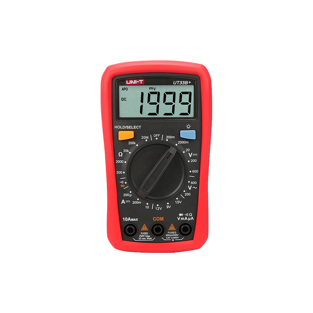 The new generation UT33+ series redefines the performance standards for entry-level digital multimeters. Our innovative industrial design ensures that these products can withstand 2 meters drop. The new LCD display layout provides a better user experience. This series ensures that users can work safely in CAT II 600V environment. Special features are, 2mF capacitance test (UT33A+); battery test (UT33B+); temperature measurement function (UT33C+); non-contact voltage (NCV) test (UT33D+).