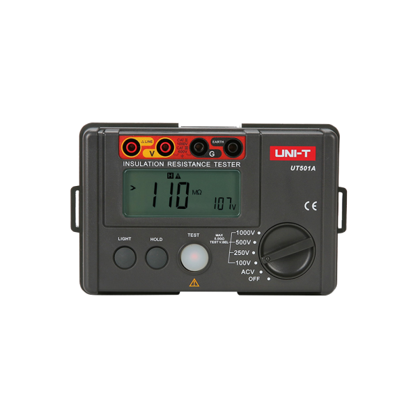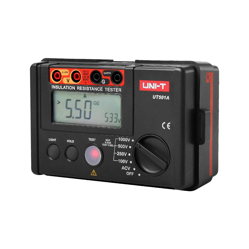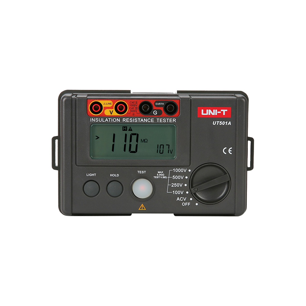 UT500 series insulation testers are used to measure the insulation resistance of electrical equipment and household appliances. This is done by measuring the insulation resistance between electrical circuits or between circuits and ground. UT500 series can measure insulation resistance, AC Voltage, low resistance, PI (Polarization Index) and DAR (Dielectric Absorption). These are dieal tools for ensuring transformers, genera-tors, high voltage motors, capacitors, cables, arresters and other electrical equipment that can oprate in a safe and accurate manner.